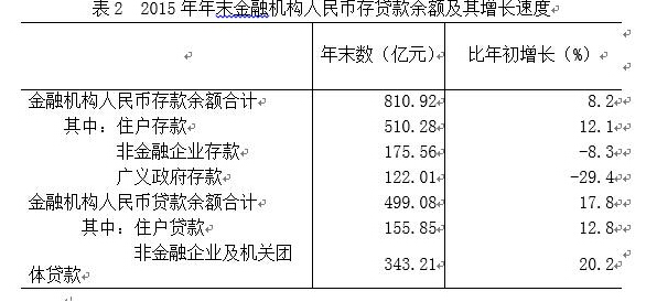 年末全市金融机构本外币各项存款余额815.10亿元,比年初增加62.70亿元;其中人民币各项存款余额810.92亿元,增加61.40亿元。金融机构本外币各项贷款余额499.78亿元,增加74.30亿元;其中人民币各项贷款余额499.08亿元,增加75.33亿元。
