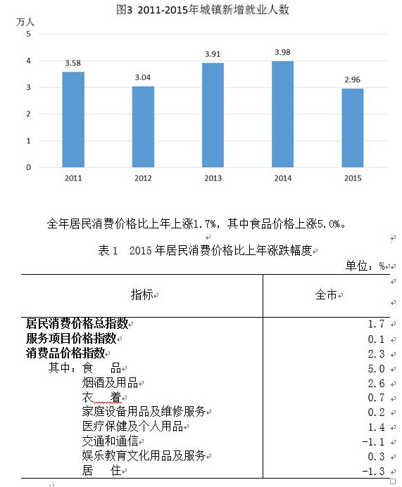 全年城镇新增就业2.96万人。年末城镇就业率为96.8%。