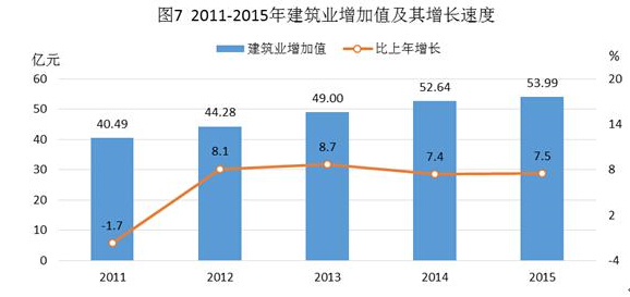 全年全社会建筑业增加值53.99亿元,比上年增长7.5%。