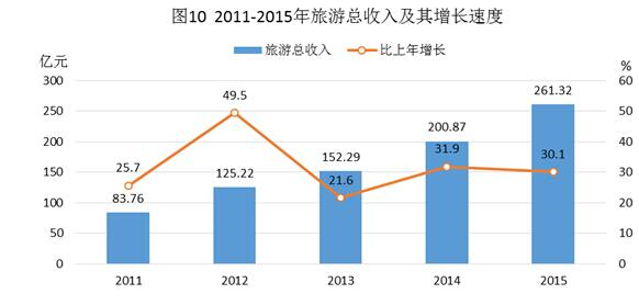 全年接待国内外游客人数达3112.59万人次,比上年增长20.4%;其中,境外旅游人数42.47万人次,增长14.9%。旅游总收入261.32亿元,增长30.1%;其中,旅游创汇1.64亿美元,增长19.9%。旅游收入占地区生产总值的比重为33.8%。