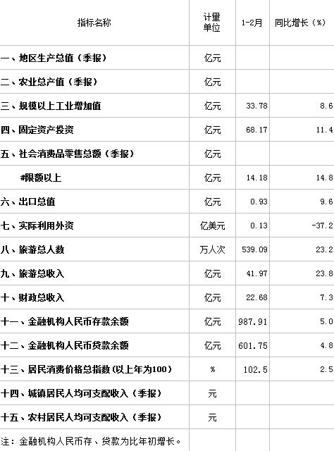 1-2月国民经济主要指标